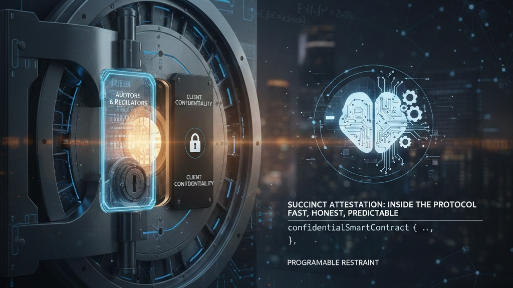 Die vertraulichen Smart Contracts sind der Teil, der fast wie Empathie gelesen wird. Sie lassen Emittenten definieren, wer ein Asset berühren darf und unter welchen Bedingungen, ohne das Privatleben eines Kunden ins Internet zu übertragen. Stellen Sie sich einen Anwalt, einen Verwalter und einen Investor vor, die alle erleichtert aufatmen, weil eine Übertragung nicht stattfinden kann, bis die vereinbarten Kontrollen bestanden sind - leise, sicher und ohne Spektakel. Es ist programmierbare Zurückhaltung: die Art von Sicherheit, die sich nicht wie Bestrafung anfühlt, sondern wie durchdachtes Design.