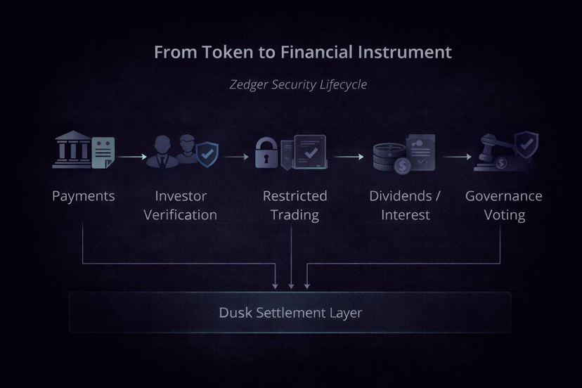 Dusk dreht sich nicht nur um Zahlungen und Staking. Es konzentriert sich auch auf die Tokenisierung von Vermögenswerten aus der realen Welt wie Aktien, Anleihen und Immobilien. Hier kommt Zedger ins Spiel.