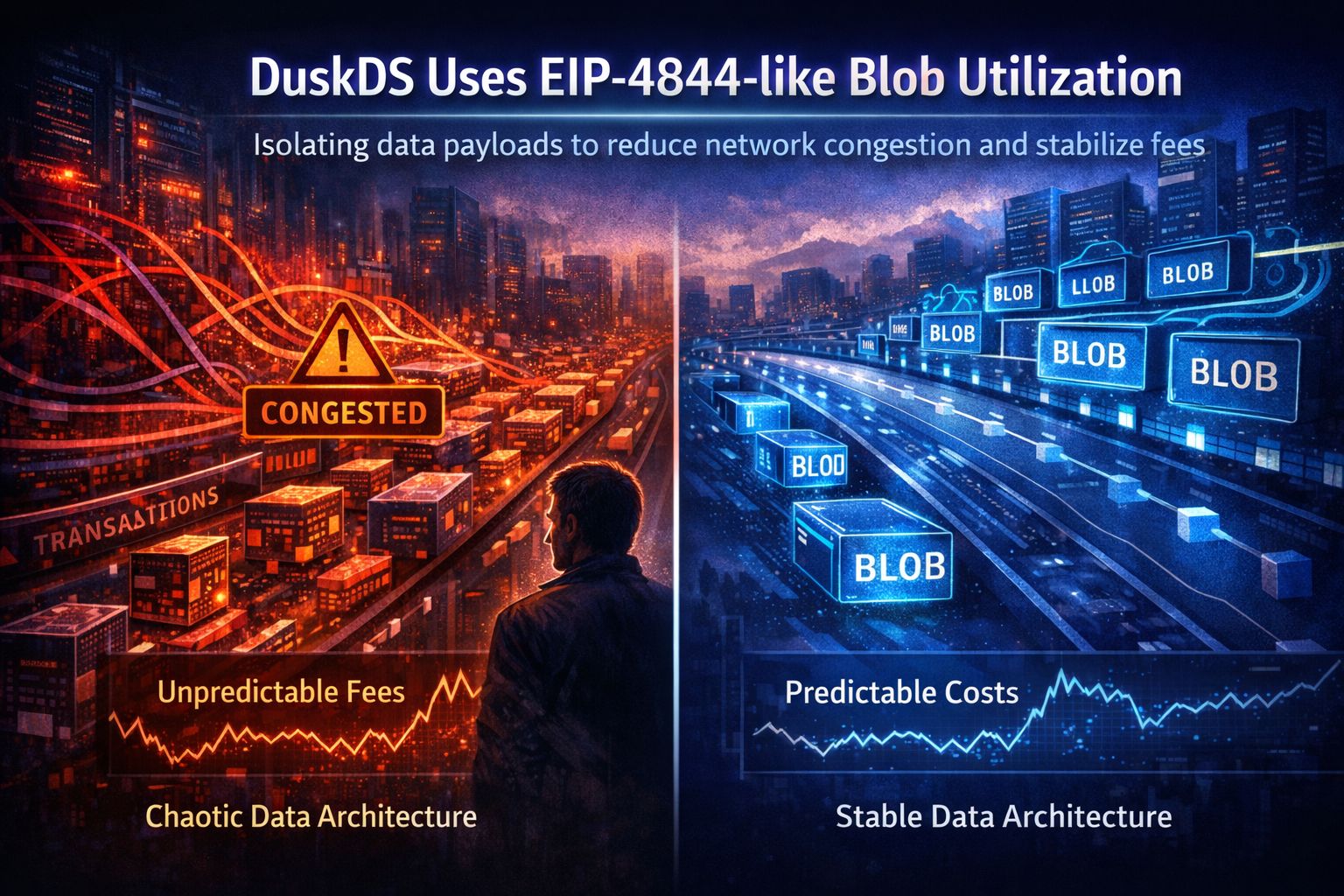 The part that stands out most is DuskDS adopting an EIP-4844-inspired blob approach. It directly addresses a developer’s biggest frustration: data shouldn’t compete with everything else for the same pipeline. By bundling heavy payloads into blobs, they move onto a separate data lane, easing pressure on normal transactions and smoothing out the unpredictable fee swings that feel almost random.