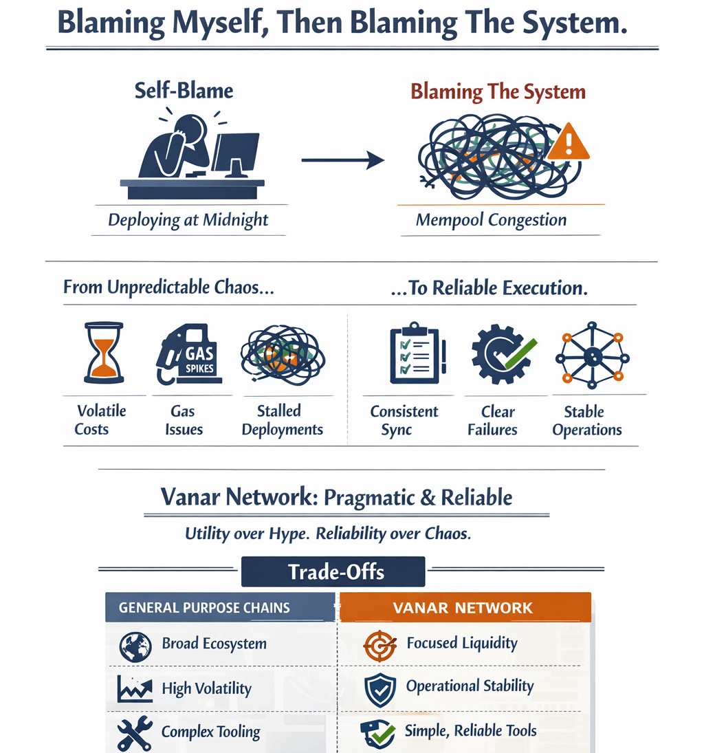 I was watching a deployment crawl forward in fits and starts, gas estimates drifting between probably fine and absolutely not, mempool congestion spiking without warning, retries stacking up because a single mispriced transaction had stalled an entire workflow. Nothing was broken in the conventional sense. Blocks were still being produced. Nodes were still answering RPC calls. But operationally, everything felt brittle.