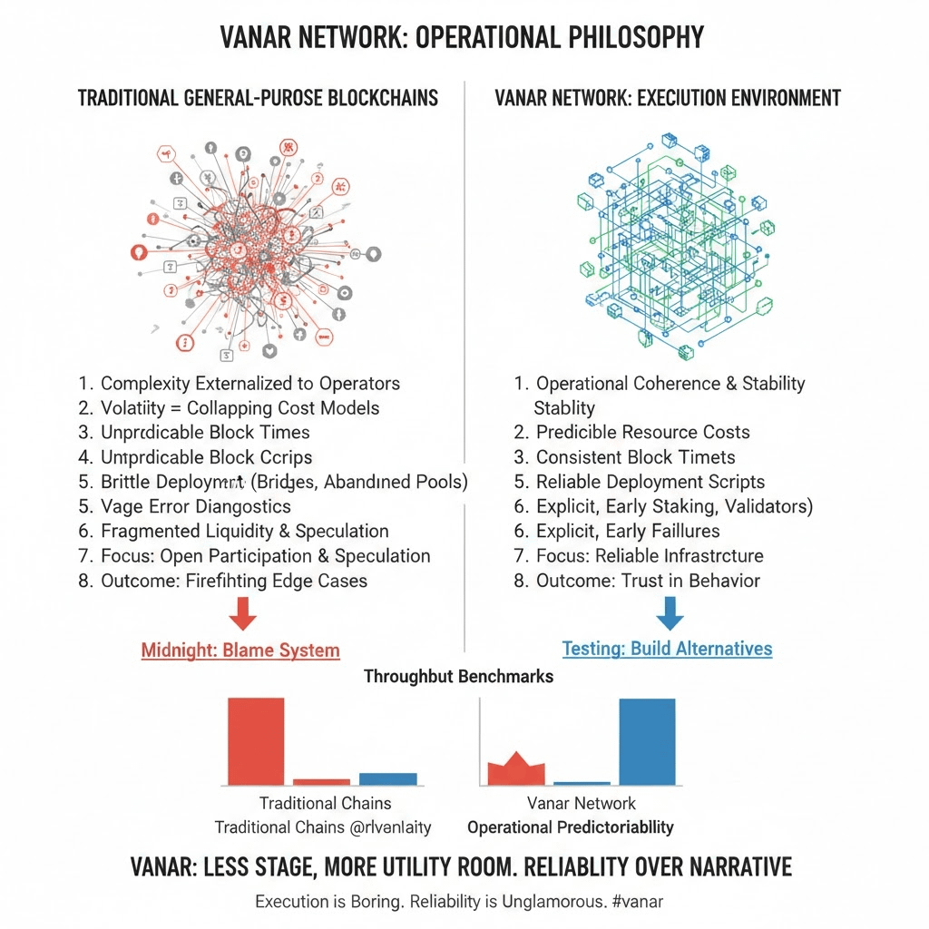 As an operator, volatility doesn’t just mean charts. It means cost models that collapse under congestion, deployment scripts that assume ideal block times, and tooling that works until it doesn’t, then offers no useful diagnostics. I’ve run infrastructure on enough general purpose chains to recognize the pattern: systems optimized for open participation and speculation often externalize their complexity onto operators. When usage spikes or incentives shift, you’re left firefighting edge cases that were never anyone’s priority.