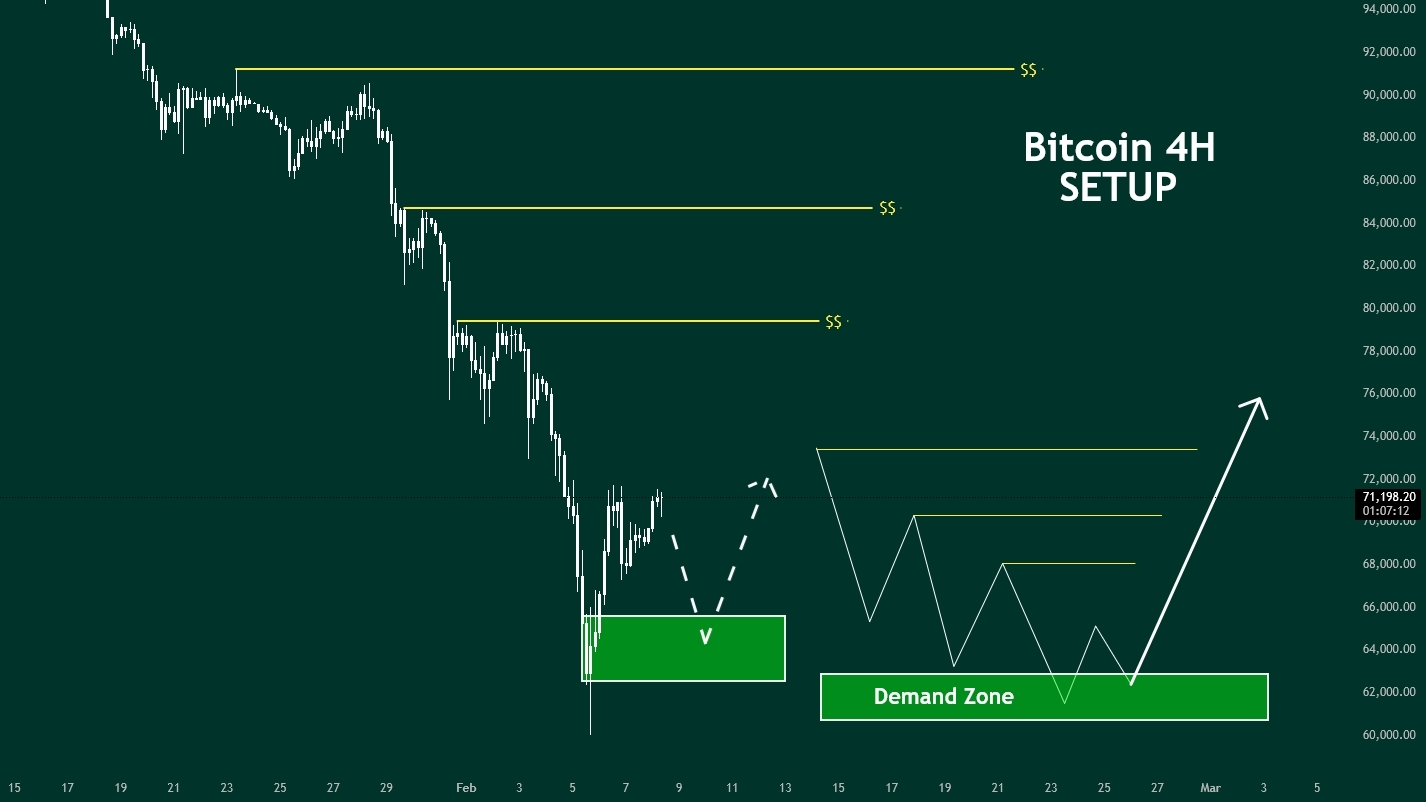 Kurzfristig entwickelt sich ein bullischer Rückzug und Gewinnziele um 73K, 80K sind im Rahmen des Möglichen. Der aggressivste Weg, das Risiko zu rechtfertigen, besteht darin, auf einen Rückzug in den Orderblock oder die "Nachfrage"-Zone basierend auf dem 4-Stunden-Zeitrahmen zu WARTEN. WENN das höhere Tief bestätigt, ist das Risiko relativ gering (kann durch den Bereich der 60K-Ganzzahl definiert werden), während das erste Gewinnziel im Bereich von 70 bis 73K liegt.