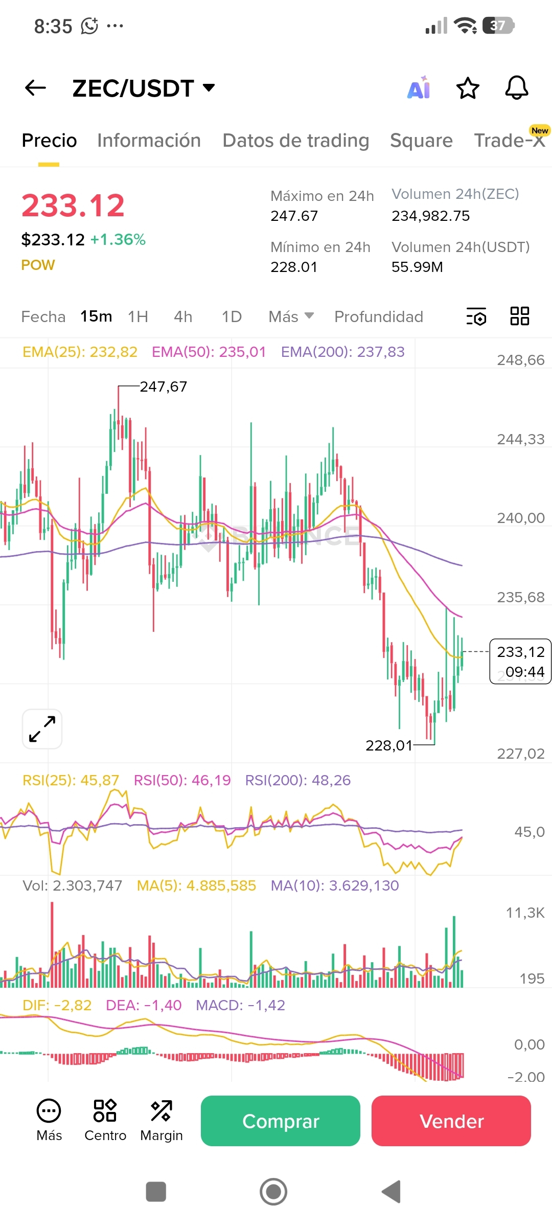 Sie sagen, dass Trading 90% Psychologie und 10% Technik ist, aber mit ZEC habe ich manchmal das Gefühl, es ist 100% beten, dass kein Wal erscheint, der stören möchte. 💅