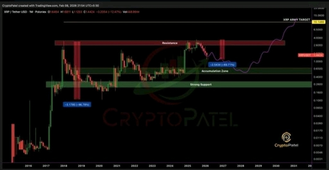 His view? Before XRP ever sees $10, the market may offer much lower entry zones first.