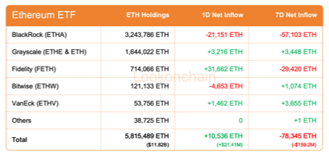 Dòng tiền ngày: Đang dương +10,536 ETH giá trị +$21.41 Triệu USD.