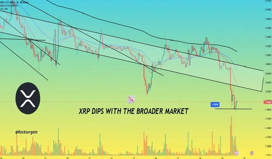 Die Tide hat sich für $XRP gewendet. Nach einem gescheiterten Versuch, die psychologische Zone von 2,00–2,10 $ zurückzugewinnen, haben die Bären die Momentum ergriffen. Der Verlust des 200-Tage-EMA wirkte als Auslöser für einen "Bergfall" und drückte die Preisbewegung in einen steilen absteigenden Kanal.