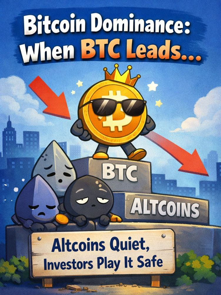 BITCOIN DOMINANCE continues to play a central role in shaping the crypto market, as it reflects where investor confidence is currently concentrated. When Bitcoin holds a large share of the total market capitalization, it usually signals a cautious environment where traders favor stability over risk. In these phases, capital tends to flow into Bitcoin first, driven by its strong liquidity, institutional presence, and reputation as the market’s benchmark asset.