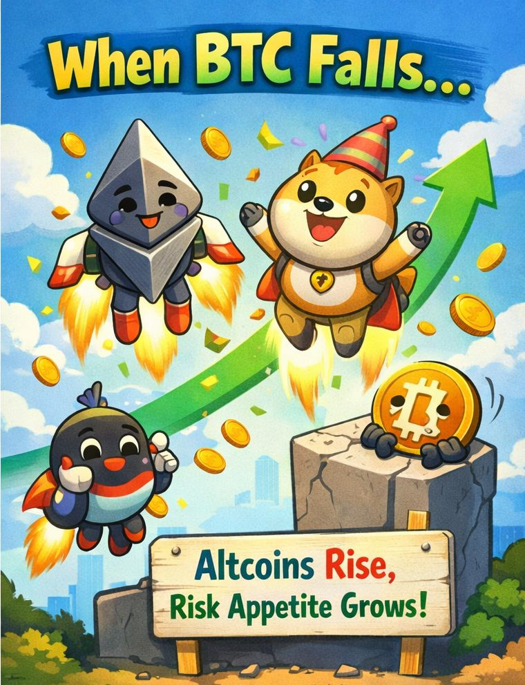 This high dominance often places pressure on altcoins. While major projects like Ethereum or Solana may hold steady, many smaller coins struggle to attract sustained momentum as liquidity is absorbed by Bitcoin. Traders commonly wait for signs of weakening dominance before increasing exposure to alternative assets, since declining Bitcoin dominance has historically aligned with periods of stronger altcoin performance and broader market expansion.