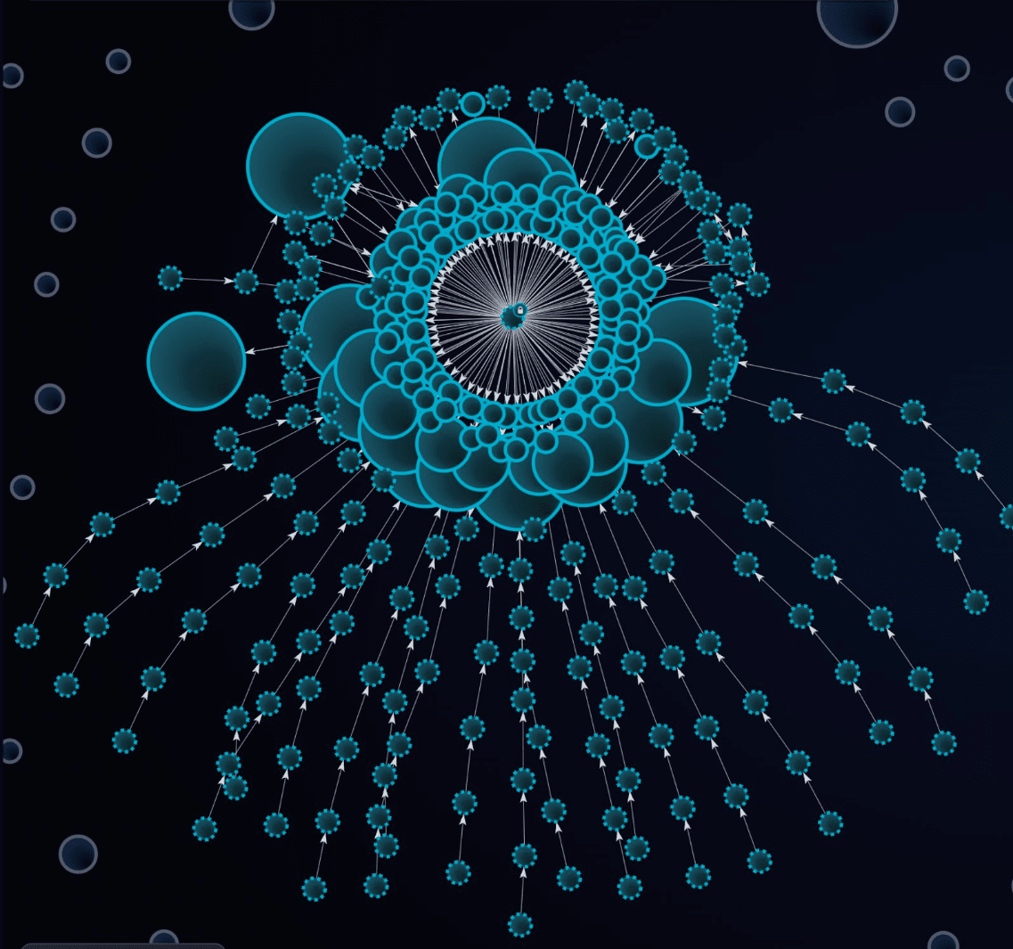 Wenn es Interaktionen zwischen Wallets gibt (Token senden oder empfangen), werden sie miteinander verbunden.