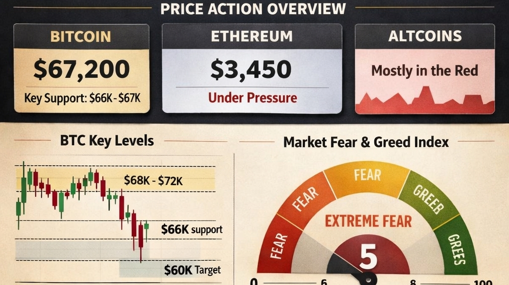 Bitcoin: trading near key support around $67,000 – $69,000 range with suppressed volume. �