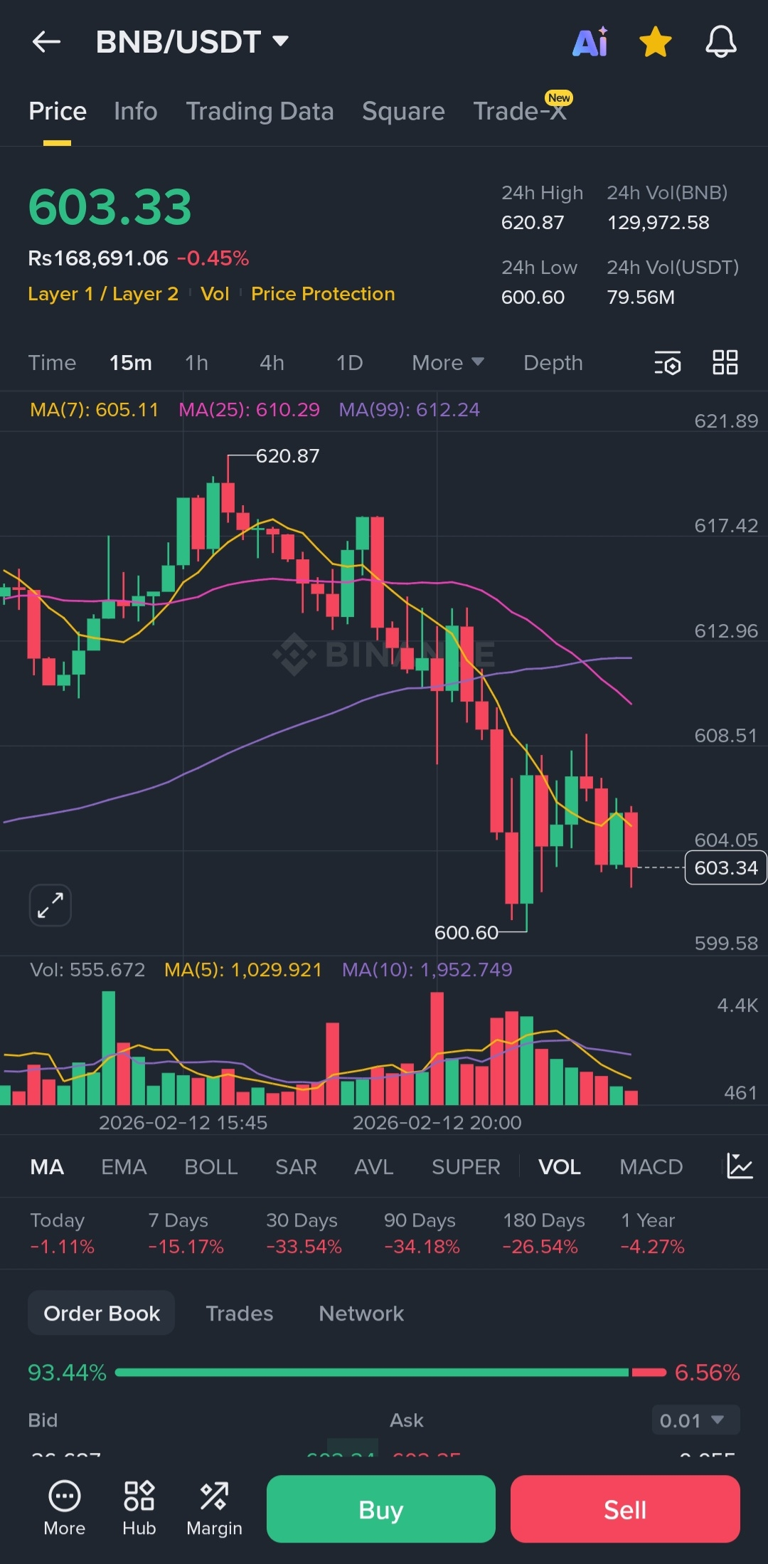 I’m currently monitoring $BNB on the 15-minute candlestick chart.
