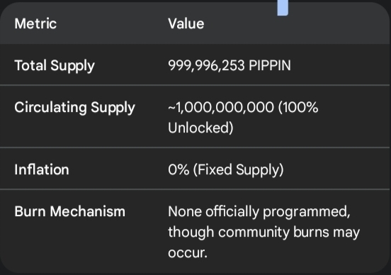* Status: Originally a community launch (pump.fun), it was adopted by Nakajima to serve as the utility token for the Pippin AI framework.