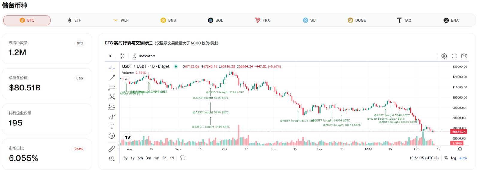Laut CoinFound-Daten halten derzeit 195 börsennotierte Unternehmen insgesamt 1.206.554 BTC, was 6,06% des gesamten Bitcoin-Angebots entspricht. Darunter hält Strategy Inc (MSTR) 714.644 BTC, was 59,23% des gesamten Bestands der börsennotierten Unternehmen ausmacht.
