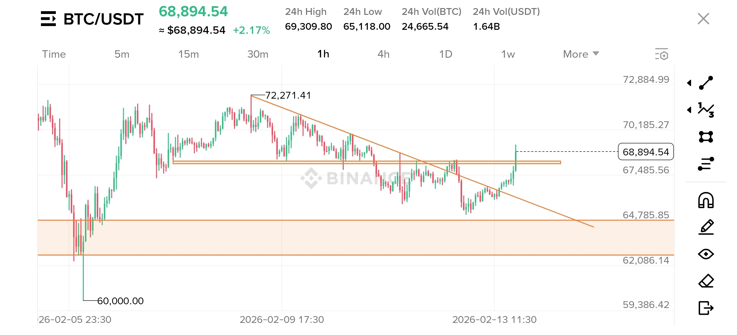 Derzeit bewegt sich Bitcoin im Bereich von 68–69 Tausend, was ein vorheriger Widerstand ist.
