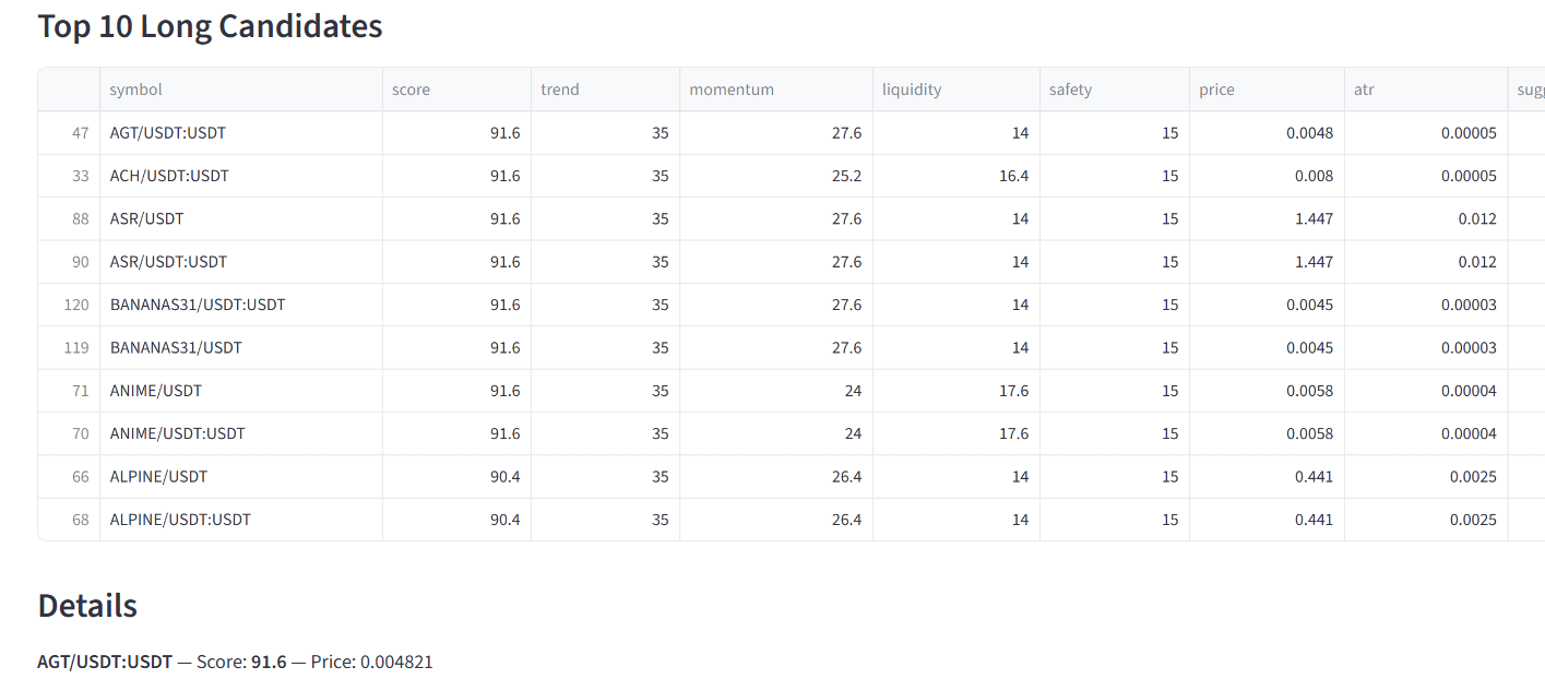 AGTAlpha0.0047214+3.60%& $ASR — Both holding steady at 91.6. Seeing different assets hit the exact same high-conviction score simultaneously suggests a systemic shift in momentum that hasn't gone "retail" yet.