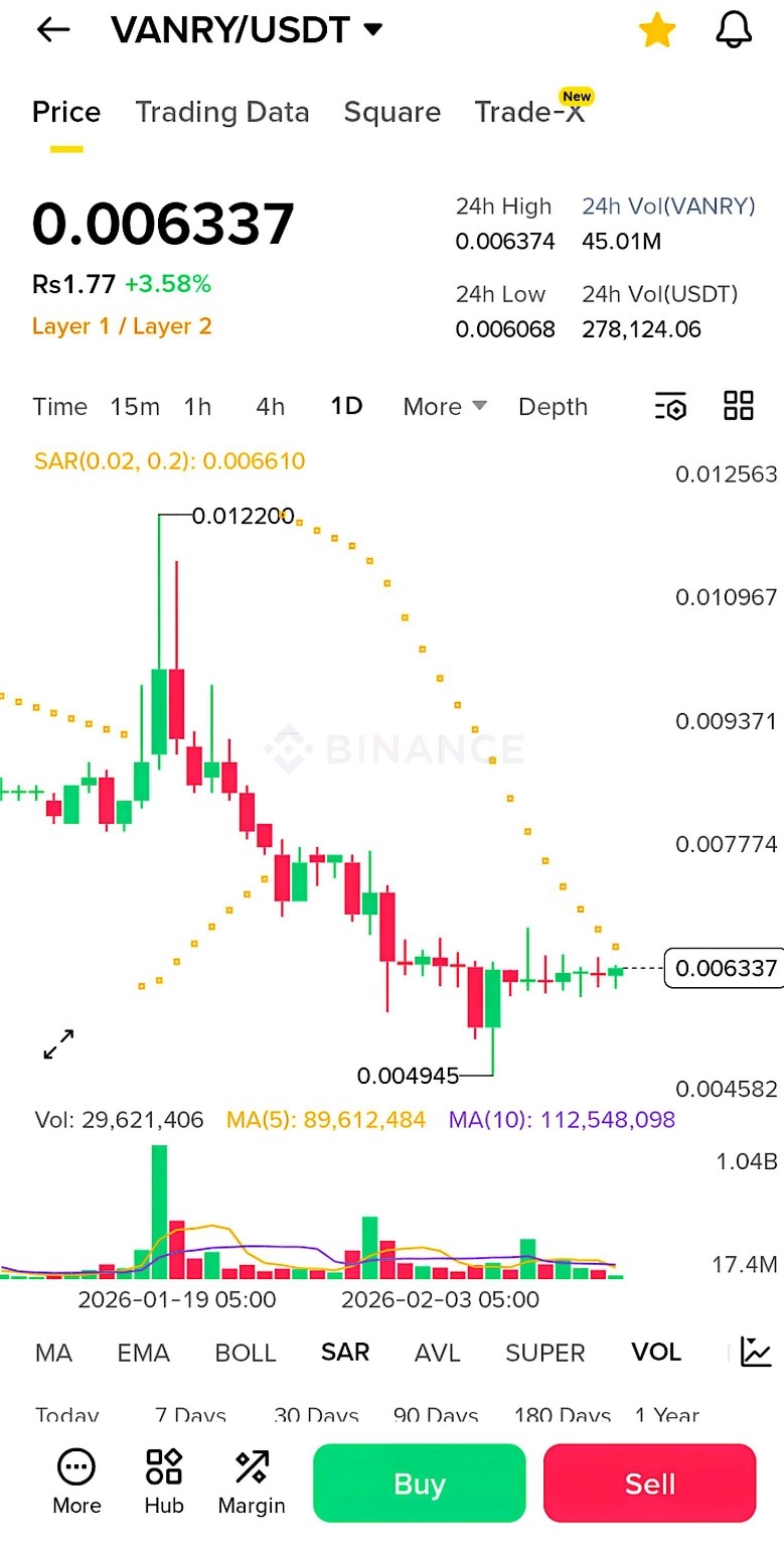Recently, price found support near the 0.0049 level, where buyers stepped in and prevented further downside. From that low, VANRY has managed to recover toward the 0.0063 area, where it is currently consolidating. This bounce shows that demand exists at lower levels, but the recovery so far appears corrective rather than impulsive.