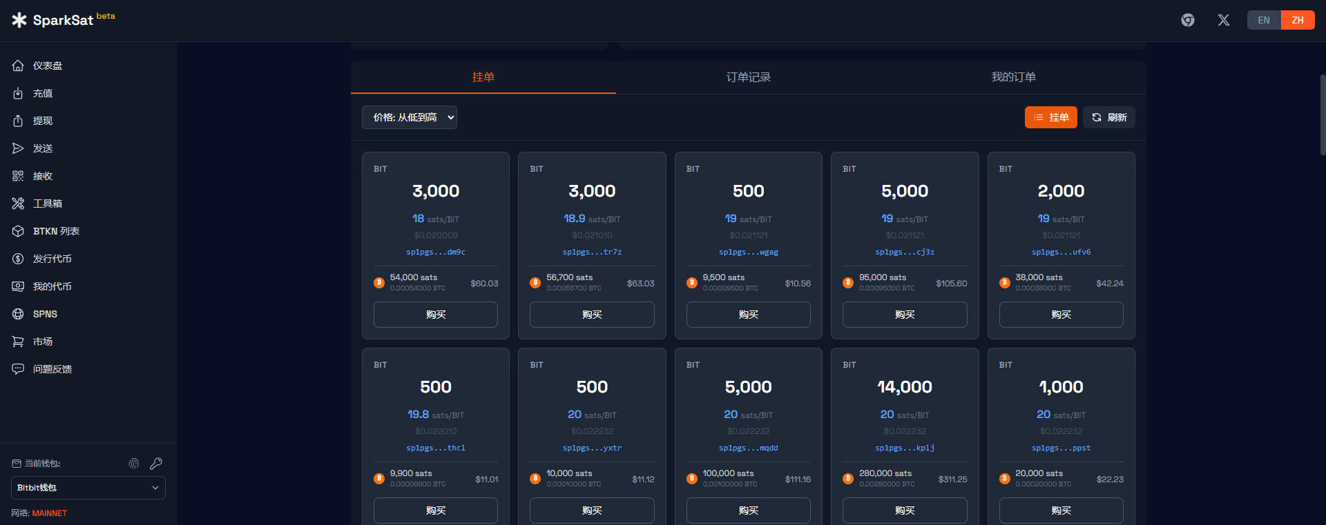 Beispiel zwei: Das Bits-Token des Spark-Protokolls im Bit-Ökosystem hat ähnliche Prinzipien wie Beispiel eins. Vor 10 Tagen gab es ein Projekt, das Bits mit einer Gesamtanzahl von 21.000 hatte. Damals installierte man einfach eine Bitbit-Wallet auf dem Computer und lud etwa 3 US-Dollar in BTC auf. Dann öffnete man die Bitbit-Wallet, um sich mit der Website zu verbinden, klickte auf Senden, und bei jedem Senden erhielt man ein Bit.