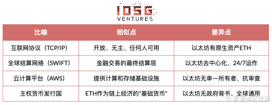 · 可信中立性:以太坊的核心目标并非效率或利润最大化,而是成为一套可信中立的基础设施——规则公开、可预测,不偏袒任何参与者,不受单一主体控制,任何人均可无需许可地参与。ETH 及其链上资产的安全性,最终依赖的是协议本身,而非任何机构信用。