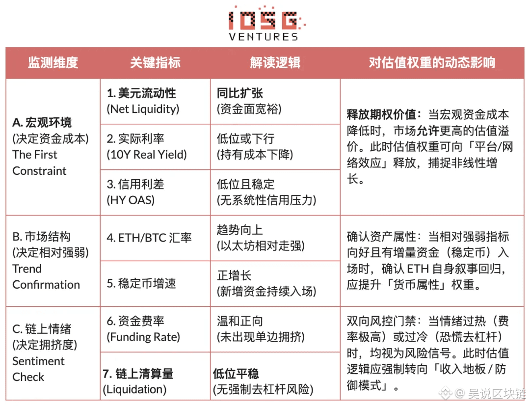 作为以太坊生态的长期建设者,我们拒绝做 ETH 的“无脑多头”。我们希望通过严谨的逻辑框架,审慎地论证我们的预判:只有当宏观流动性、风险偏好与网络效应同时满足市场状态的触发条件时,更高的估值才会被市场重新计入。