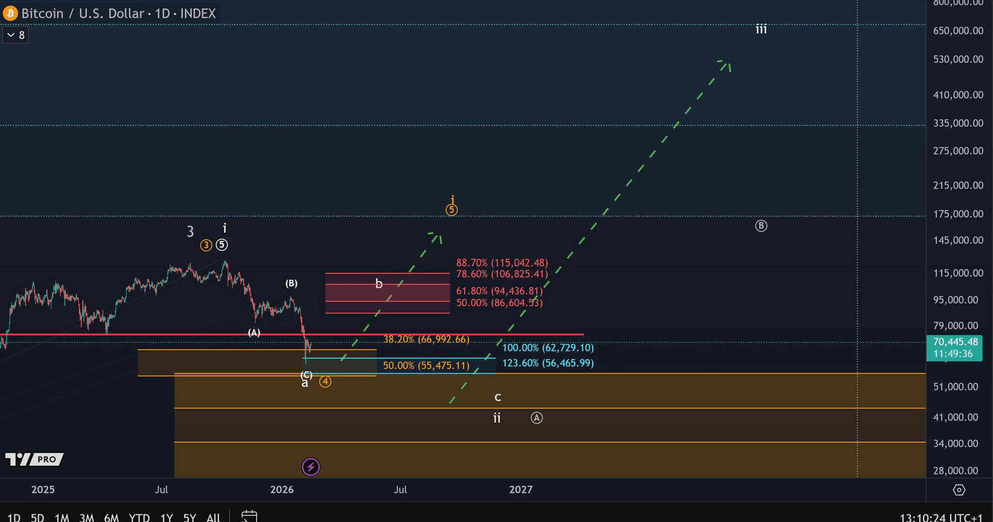 If this white-labeled ABC structure develops clearly on the chart, the main resistance zone to watch sits between $86,600 and $115,040. That’s the area where upside momentum could start to slow or where bigger decisions get made.