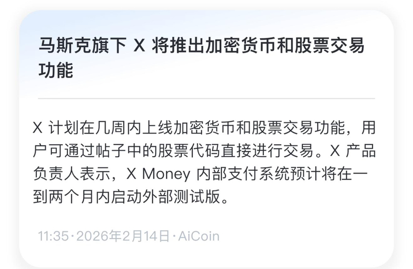 这更像是 X 平台内新增的交易功能,属于金融生态的一部分,但不表示这必然与 X Money 的 beta 同时上线。