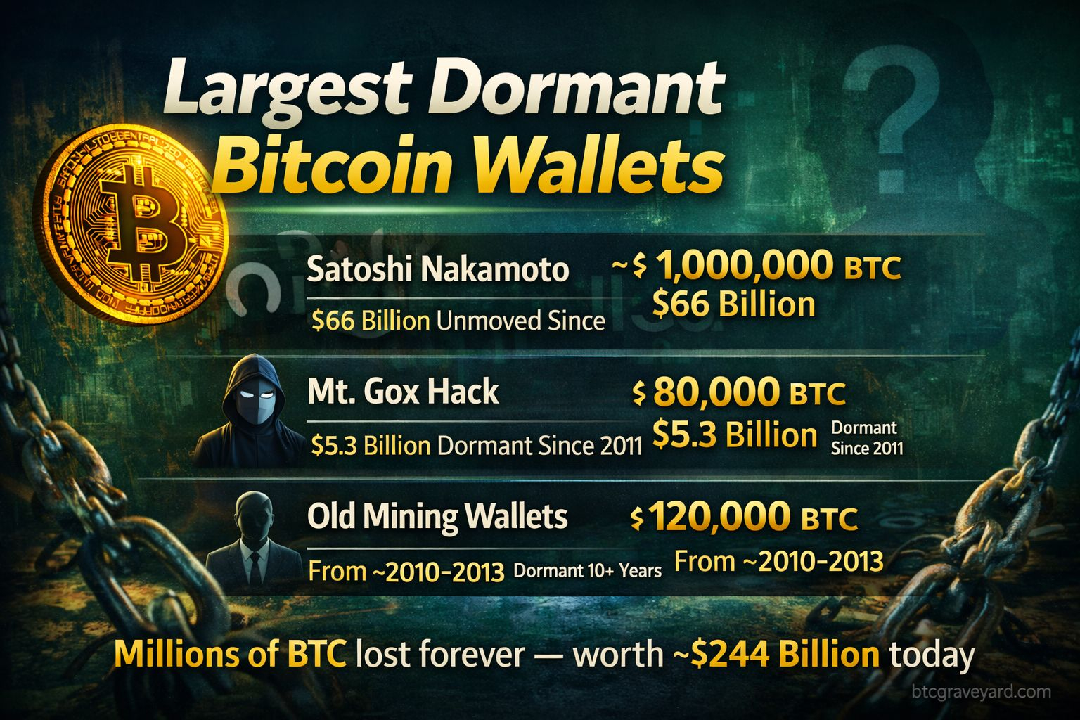 There are also wallets connected to the Silk Road era, along with other mysterious addresses that have stayed dormant for over a decade.