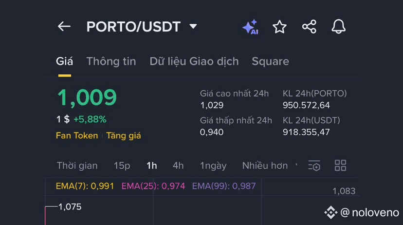 Zum Zeitpunkt der Analyse wird der digitale Vermögenswert $PORTO zu einem Preis von 0,996 gehandelt, was einem Anstieg von +5,62% innerhalb von 24 Stunden entspricht. Dieser Vermögenswert zeigt einen Trend in Richtung einer wichtigen psychologischen Widerstandsmarke von $1.000, nachdem er sich von der Unterstützungsmarke 0,940 erholt hat. Der Tageshöchstpreis erreichte 1.000, was auf ein erhebliches Interesse seitens der Käufer hinweist.