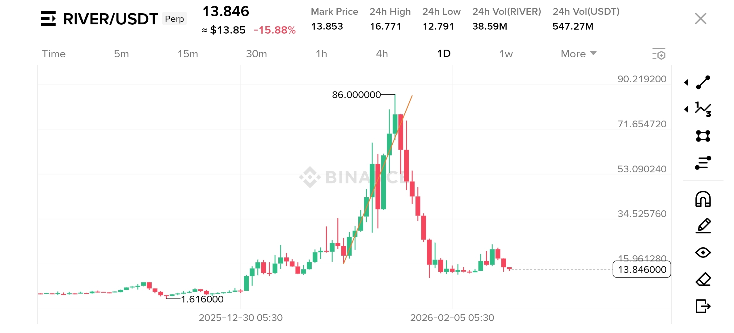 RIVER hat Longs brutal von 86 → unter 15 gewischt.