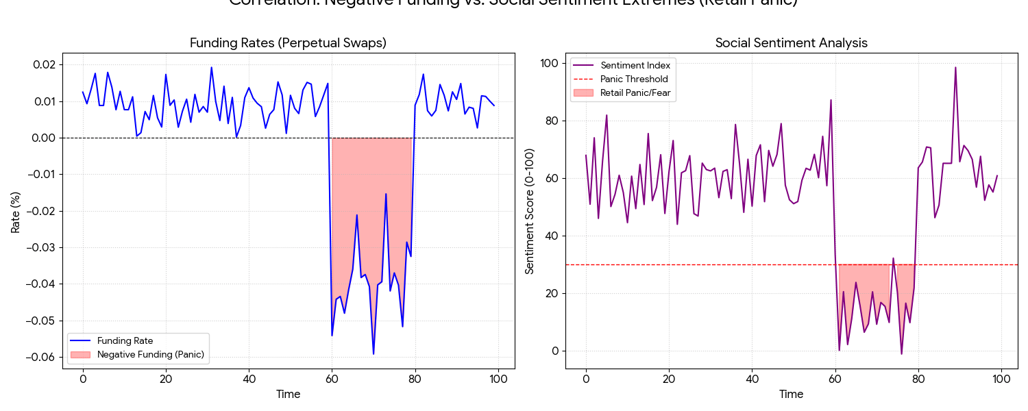 Eines der deutlichsten Zeichen für Panik versus Gelegenheit kommt von Finanzierungsraten und Stimmungsmessungen. Wenn lange Positionen übermäßig dominant sind, aber die Finanzierung negativ wird, signalisiert dies oft, dass der Einzelhandel überheblich und gestresst ist. Extreme Angst in Stimmungsumfragen oder sozialen Kanälen kann auch genau den Punkt markieren, an dem das schlaue Geld anfängt, heimlich zu kaufen.