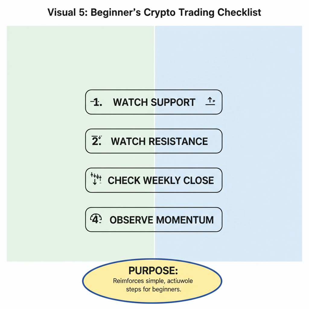 💡 Pro Tipp für Anfänger: Halte es visuell. Zeichne Unterstützungs- und Widerstandslinien auf deinen Charts, notiere wöchentliche Schließungen und stelle dir die beiden potenziellen Wege vor. Im Laufe der Zeit kann dir diese Gewohnheit ein viel klareres Gefühl für die Marktpsychologie und das Timing geben, selbst wenn du gerade erst anfängst.