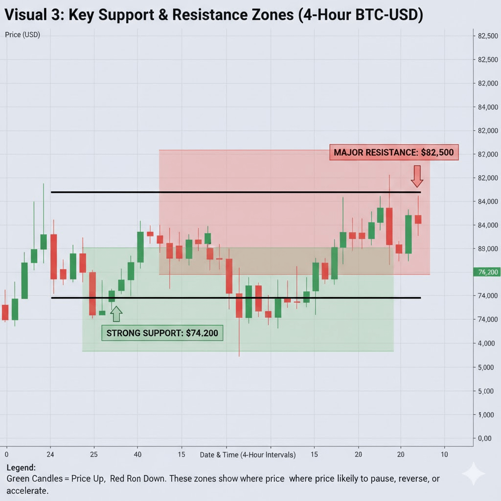 Unterstützung: $74.200 – Dieser Boden ist entscheidend. Ein Fall darunter könnte auf schwächelndes Vertrauen hindeuten, was möglicherweise zu einem Rückgang führt und das Q1-Momentum verzögert.