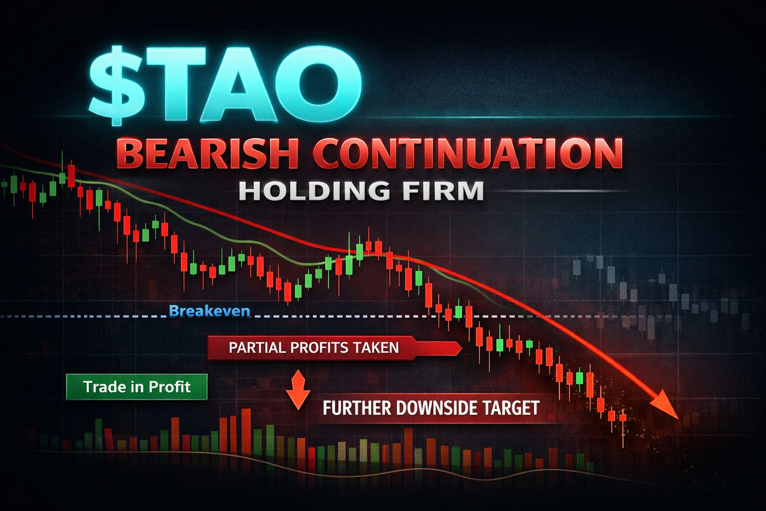 $TAO continues to respect the downside structure, with the short position playing out cleanly. Sellers remain firmly in control, and price action shows no meaningful signs of reversal at this stage.