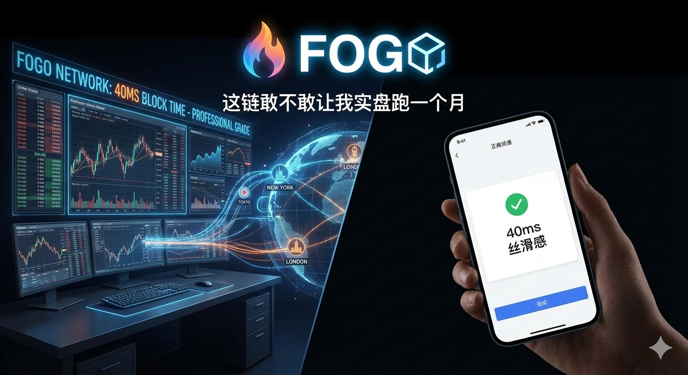 这话戳中了Fogo最硬核的那个点——不是40ms出块多快,是它真敢让专业玩家进场检验。东京纽约伦敦三个节点集群,不是摆着好看的,是把延迟压到让高频交易那帮老狐狸挑不出毛病的程度。20-40ms什么概念?比你眨眼快十倍。量化策略跑上去,不是拼谁手速快,是拼谁策略真能打。