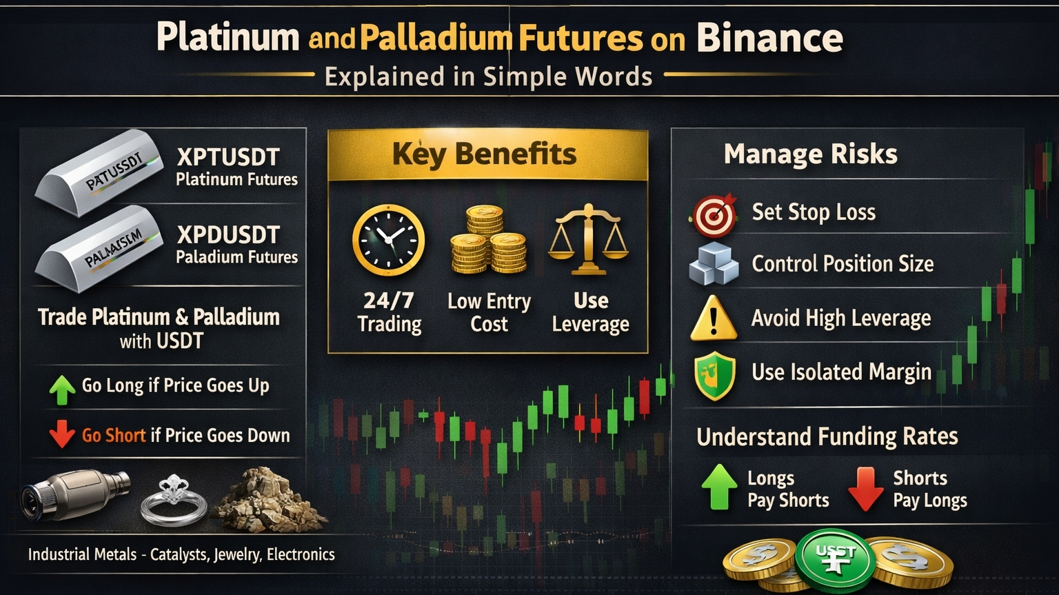 Binance hat es gerade möglich gemacht, Platin- und Palladium-Futures direkt auf seiner Plattform zu handeln. Das bedeutet, dass Sie jetzt auf den Preis dieser realen Metalle spekulieren können, ohne sie physisch zu kaufen oder zu lagern.
