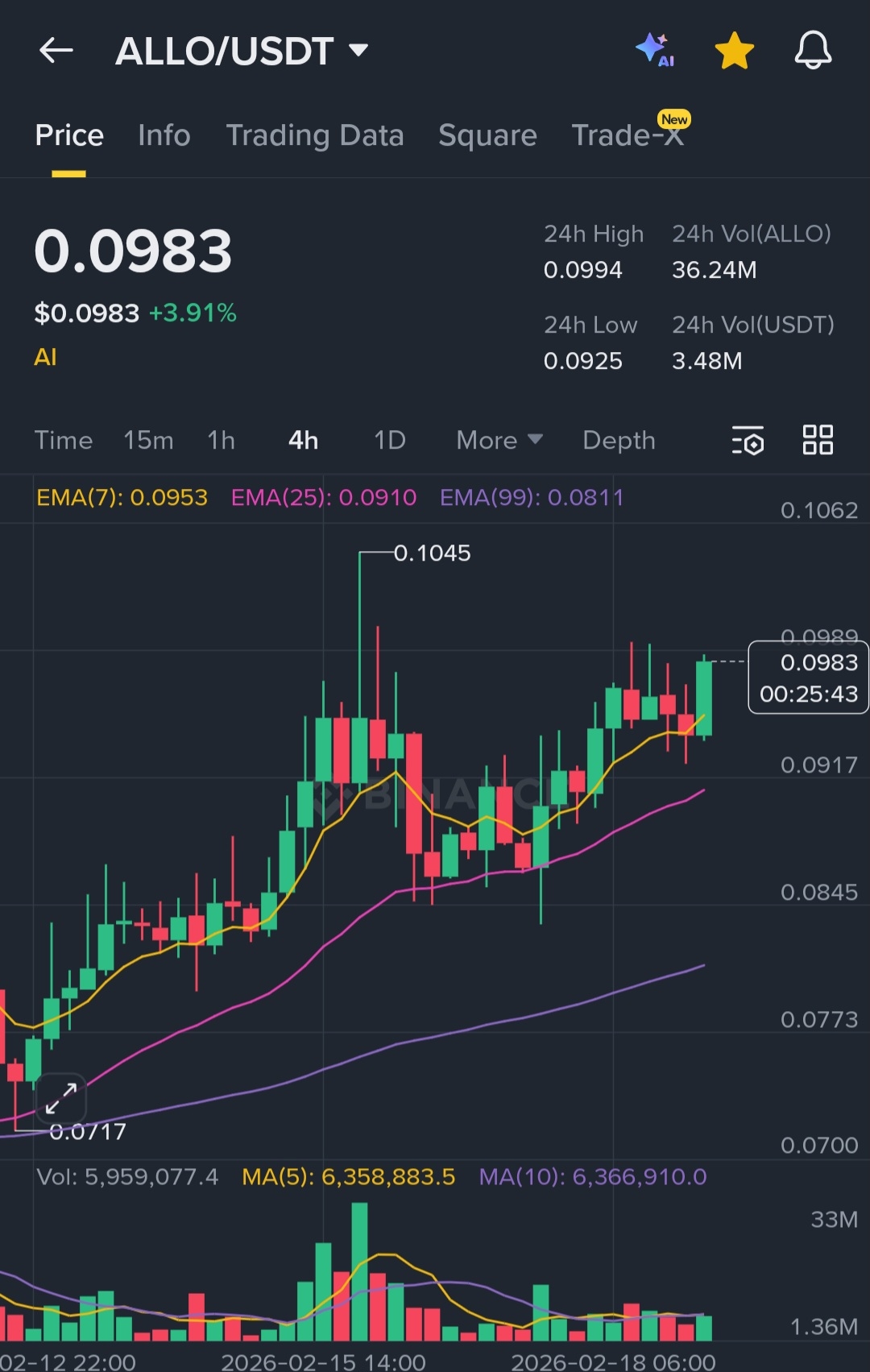 من أكثر الأسئلة ذكاءً التي وصلتنا هي عن خطورة الدخول والسعر يقترب من السقف الذي حددناه. بالنظر لشارت عملة $ALLO ، منطقة 0.1045 هي المقاومة الحالية. فماذا يحدث لو اندفعت وقررت الشراء عند هذا الرقم تحديداً؟