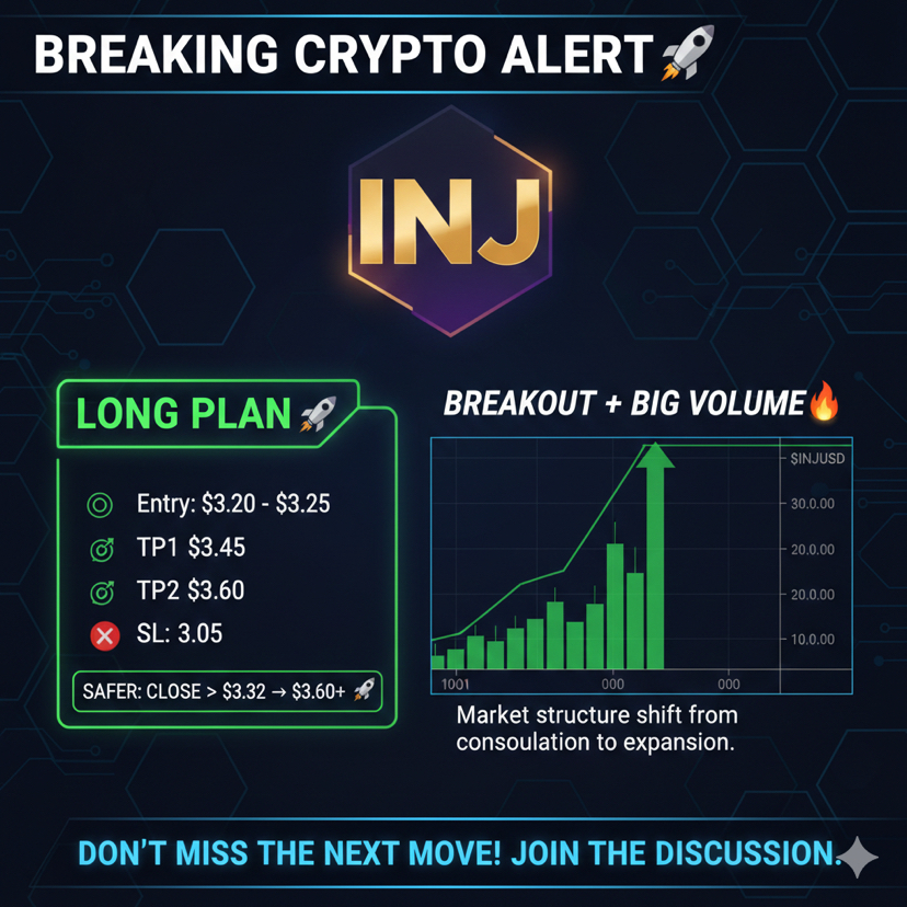 The market structure for $INJ is shifting from consolidation to expansion. With the volume backing this move, the bulls are clearly back in control. As always, manage your risk and don't chase the green candles—let the trade come to you.