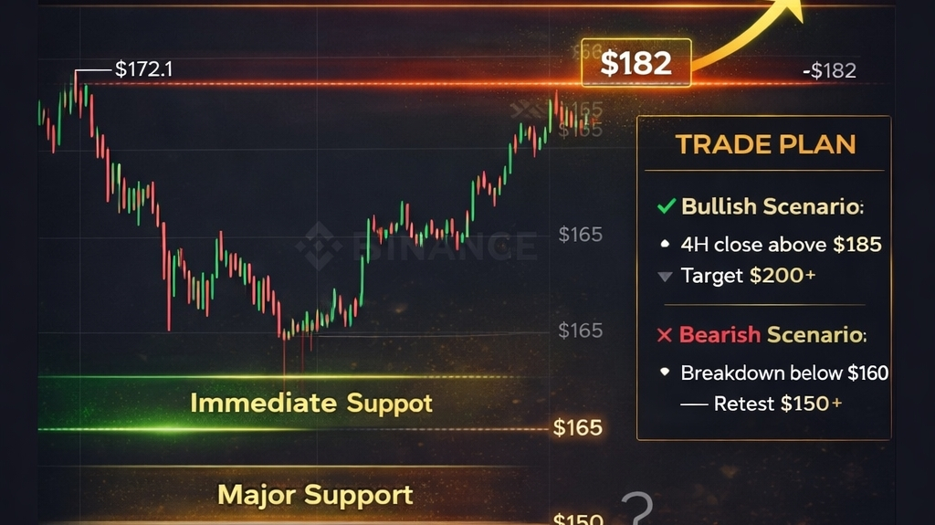 A strong 4H close above $185 could trigger momentum toward $200+.