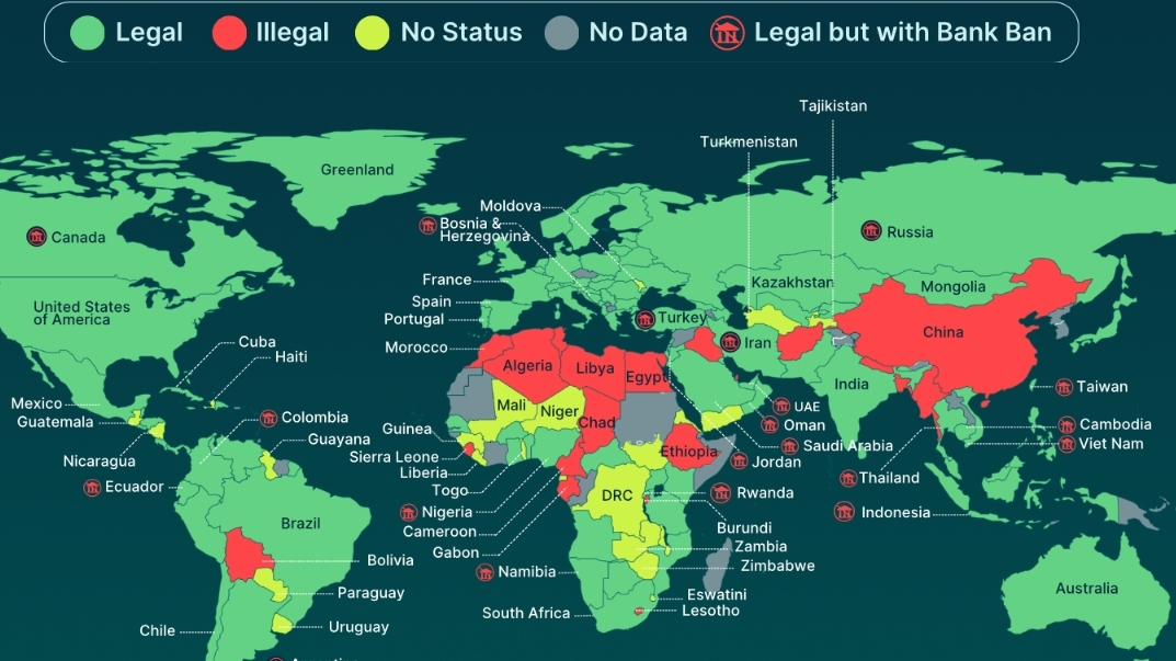 The legal status of cryptocurrencies varies substantially from one jurisdiction to another, and is still undefined or changing in many of them.[1] Whereas, in the majority of countries the usage of cryptocurrency is not in itself illegal, its status and usability as a means of payment (or a commodity) varies, with differing regulatory implications.[2]
