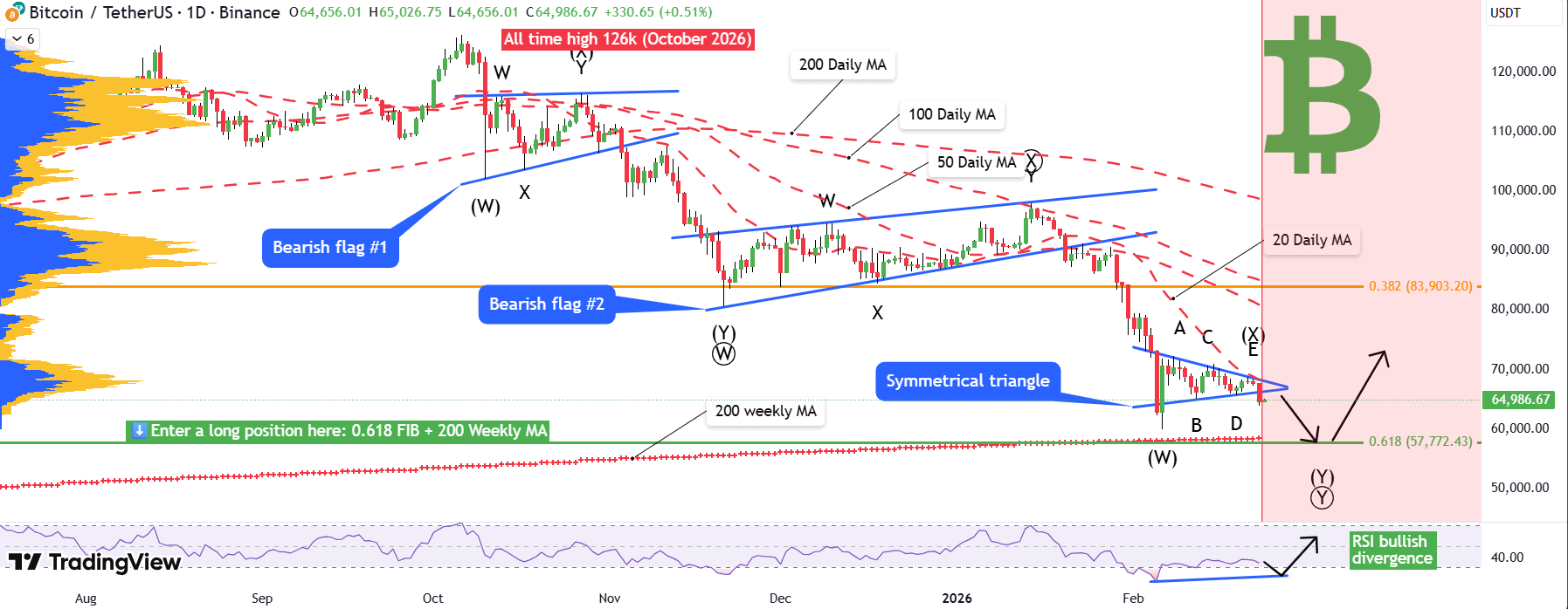Wenn der Preis $58K erreicht, könnten wir eine bullische RSI-Divergenz sehen – eines der stärksten Umkehrsignale im Krypto-Bereich. Diese Kombination könnte einen starken Rückprall auslösen.