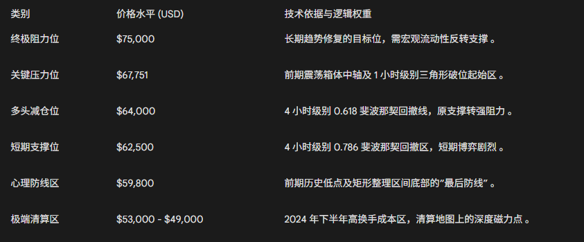 • 回落剧本(65% 概率): 如果 48 小时内收不回 $64,000,空头将直指 $59,800 最后的心理防线。一旦跌破,我们将去 $53,000 - $49,000 的深度清算区寻找真正的底部 。