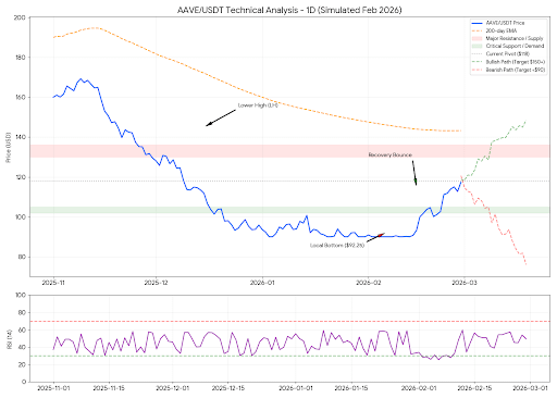 The following professional technical analysis evaluates Aave ($AAVE ) as of February 2026, incorporating multi-timeframe structural shifts, momentum indicators, and liquidity mapping.