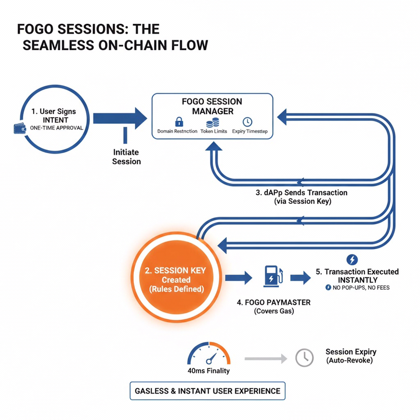 Fogo acts as the clinical antidote to that friction. Instead of fighting the blockchain, it uses Session Keys and a deep paymaster infrastructure to absorb the entire mess. When I start a session, I am signing a single Intent Message that sets the boundaries for the next few hours. Behind the scenes, Fogo runs a customized Solana Virtual Machine (SVM) on a pure Firedancer client—an extremely optimized version produced by Jump Crypto that squeezes every bit of performance out of the hardware. This allows the chain to hit 40ms block times, which is roughly 10 times faster than the standard Solana mainnet and 18 times faster than most other high-performance layers. Since the session key handles the signing and the built-in paymaster system covers the gas, the app just works without a single confirmation interruption.