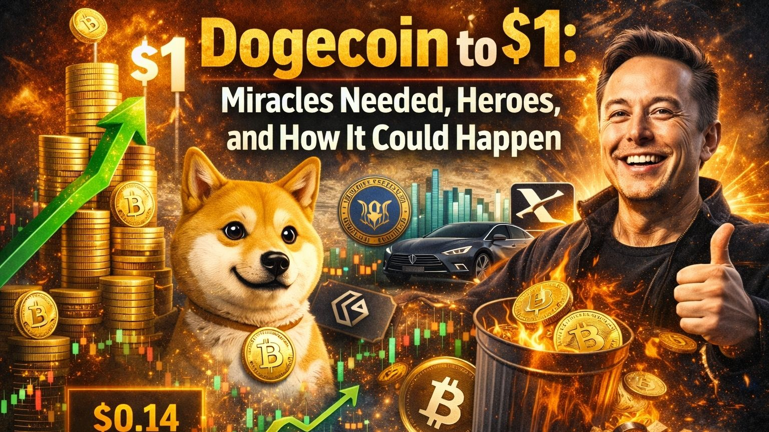 Dogecoin, der $1 erreicht, wäre ein massiver Sprung und würde eine lustige Meme-Münze in einen ernsthaften Konkurrenten verwandeln. Im Moment wird er weit darunter gehandelt, also lassen Sie uns die "Wunder" aufschlüsseln, die erforderlich sind, wer sich in Position befindet, um es möglich zu machen, und einfache Schritte mit Beispielen.