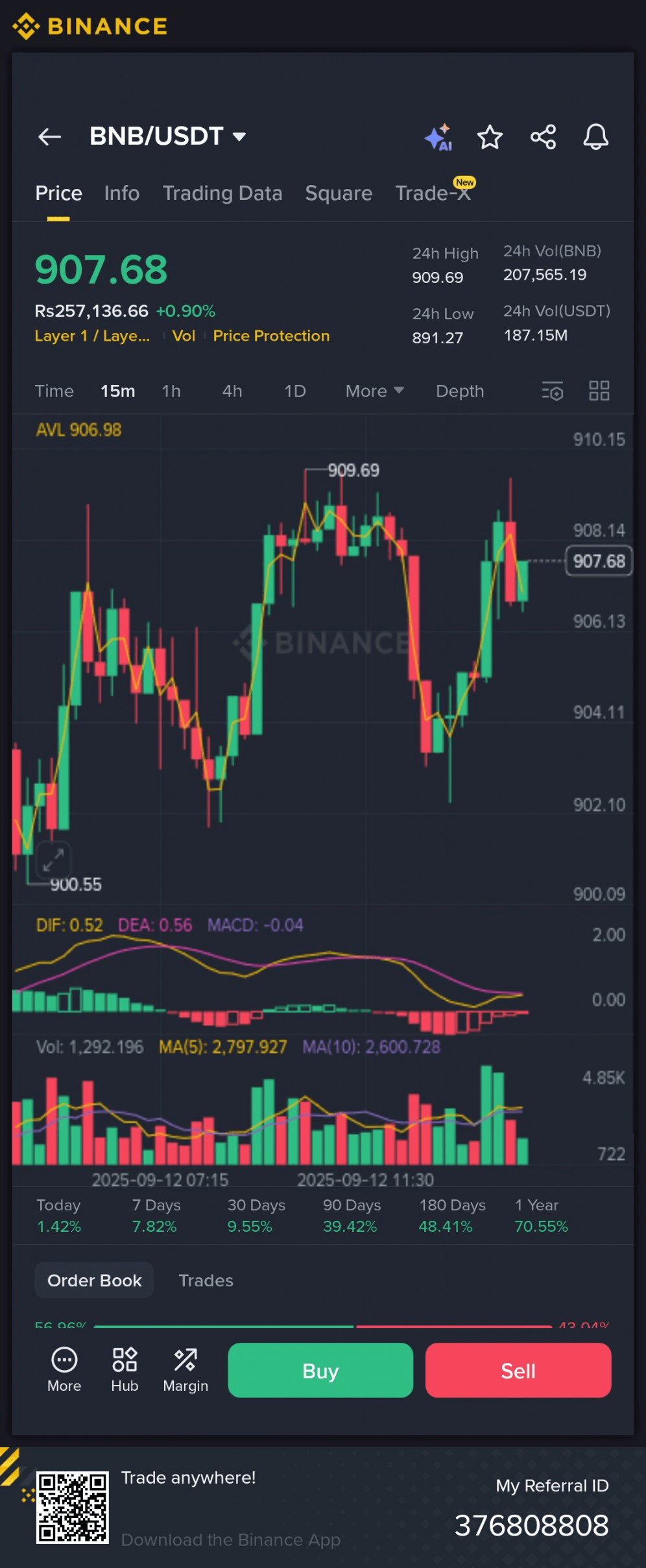 đ Hier handeln â BNBUSDT Perp: $908.1 (+0.93%)