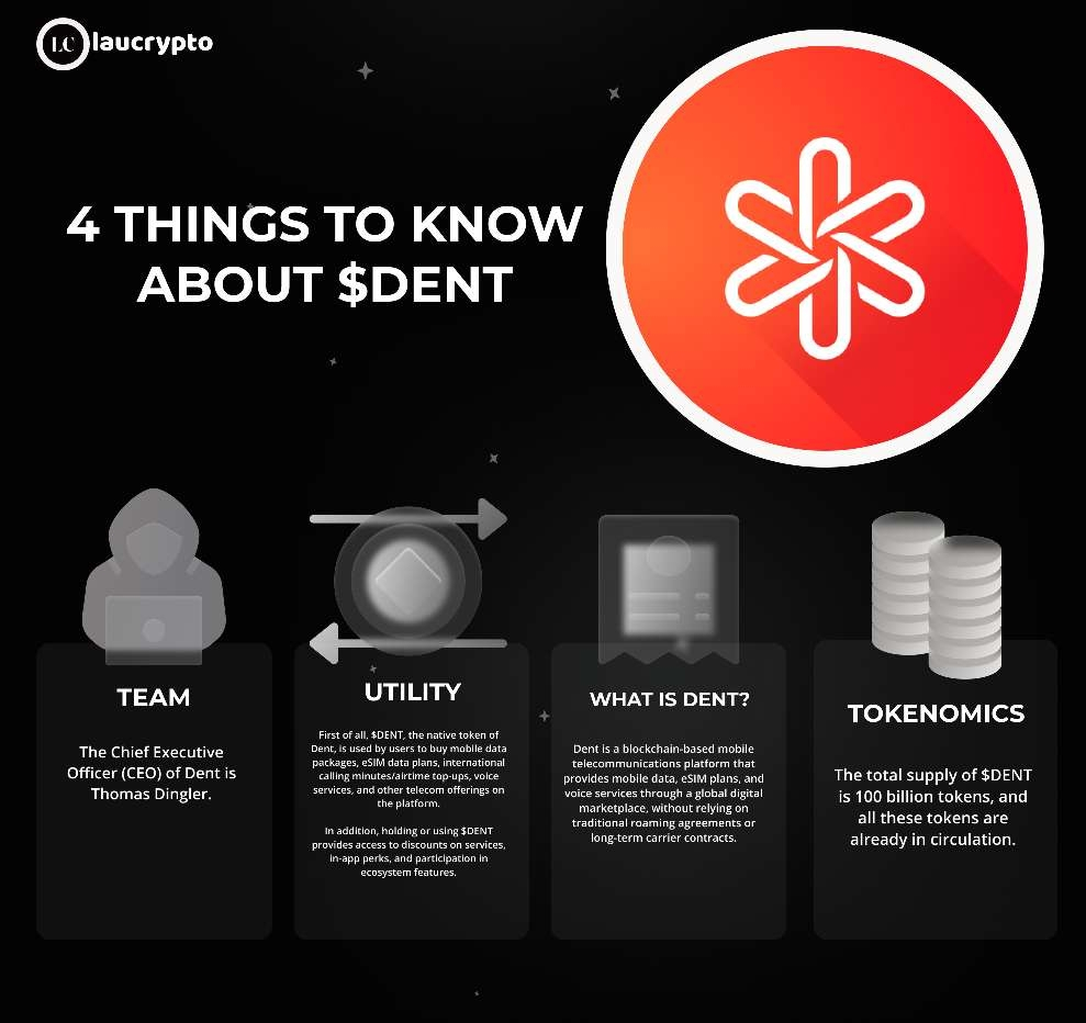 $DENT é o token nativo da Dent Wireless, uma plataforma de telecomunicações móveis baseada em blockchain que fornece dados móveis, planos eSIM e serviços de voz por meio de um mercado digital global.
