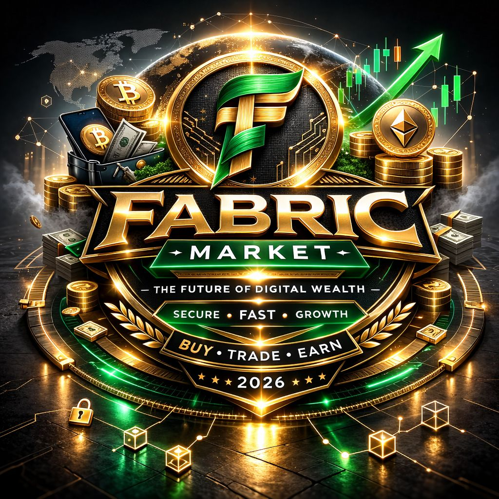 Simple words mein, Fabric Market ka logo ek digital future, global trading, security aur growth ka symbol hai. Is design ka aim hai ke log is brand ko ek powerful aur trusted crypto marketplace samjhein jo 2026 aur us ke baad ke financial world ko represent karta hai.