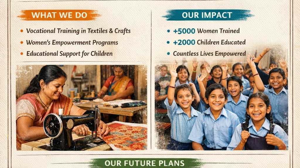 Through vocational training programs—particularly in textile and craft-based skills—women gain practical knowledge that enables them to earn independently and support their families. These programs are designed not just to provide income opportunities, but to build confidence, leadership, and self-reliance.