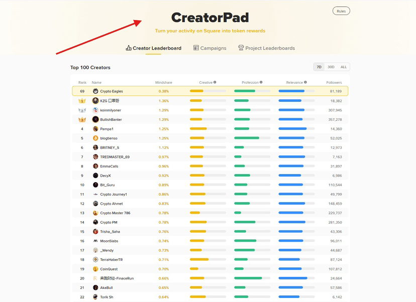 • ক্রিয়েটর সেন্টার → CreatorPad → Leaderboard।