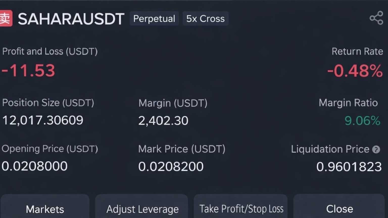 Short auf 100.000 $SAHARA at 0.02 📉