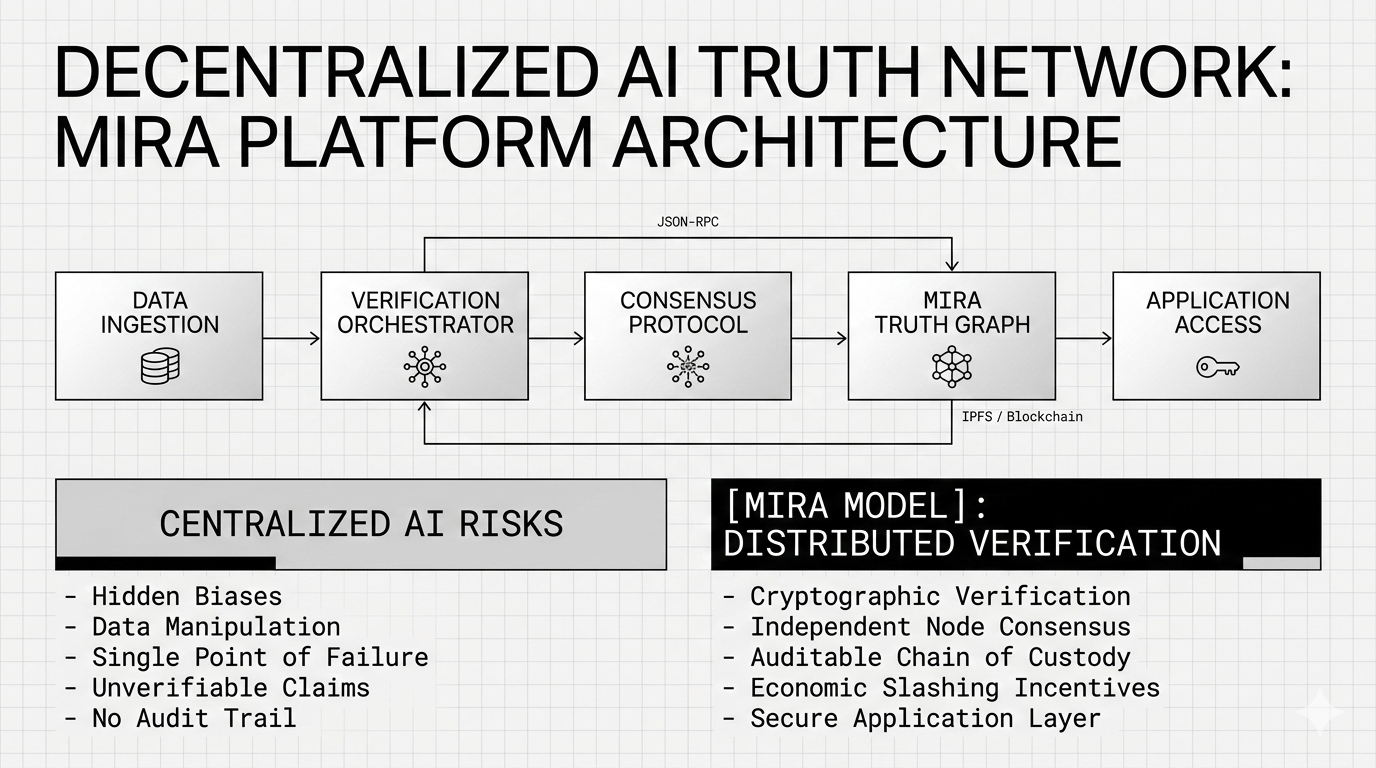 Instead of asking one AI model to verify another AI model (which is like asking a suspect to investigate themselves), Mira routes outputs through a distributed network of independent AI models that reach consensus on the truthfulness of individual claims. Think of it like a jury system — but for machine-generated information. Every response gets broken down into checkable sub-claims. Those claims are independently evaluated. Consensus determines what's verified. The result gets cryptographically certified on-chain.